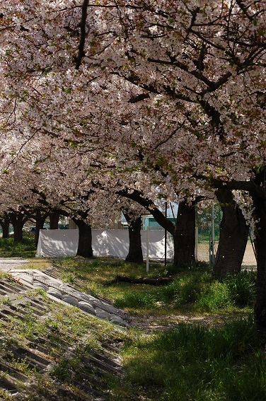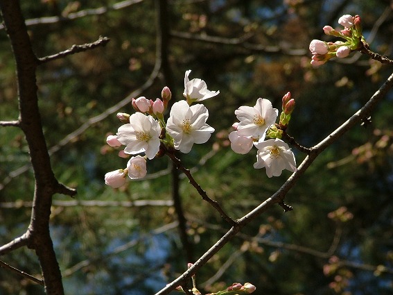 堀端のソメイヨシノは、まだやっと咲き始めたばかりの花びらを、