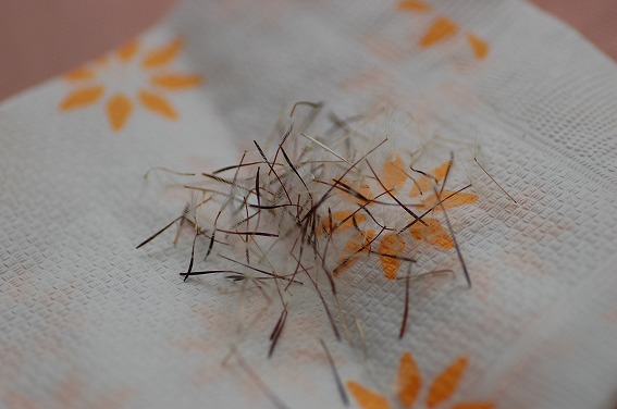 種を取りながら、ふと、その中に、赤花かすみ草がないことに、